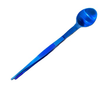 Productos de Venta caliente, cuchara con pinzas, platos dobles personalizados, cuchara de degustación azul de acero inoxidable con pinzas, cuchara de doble función